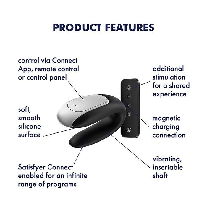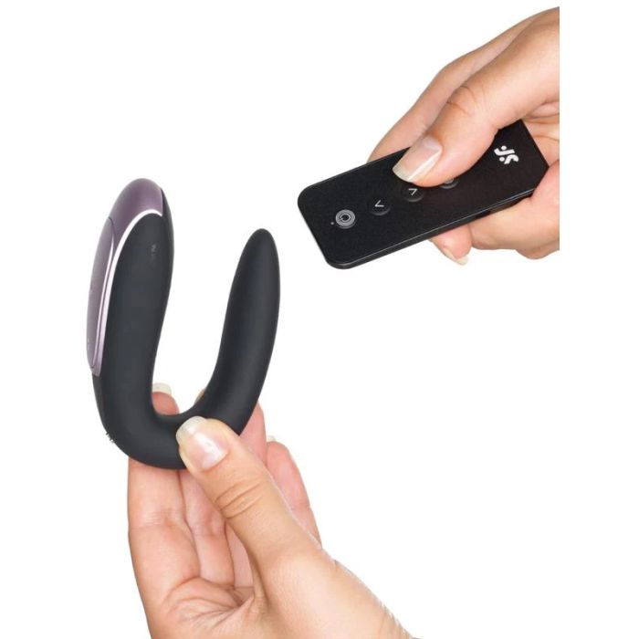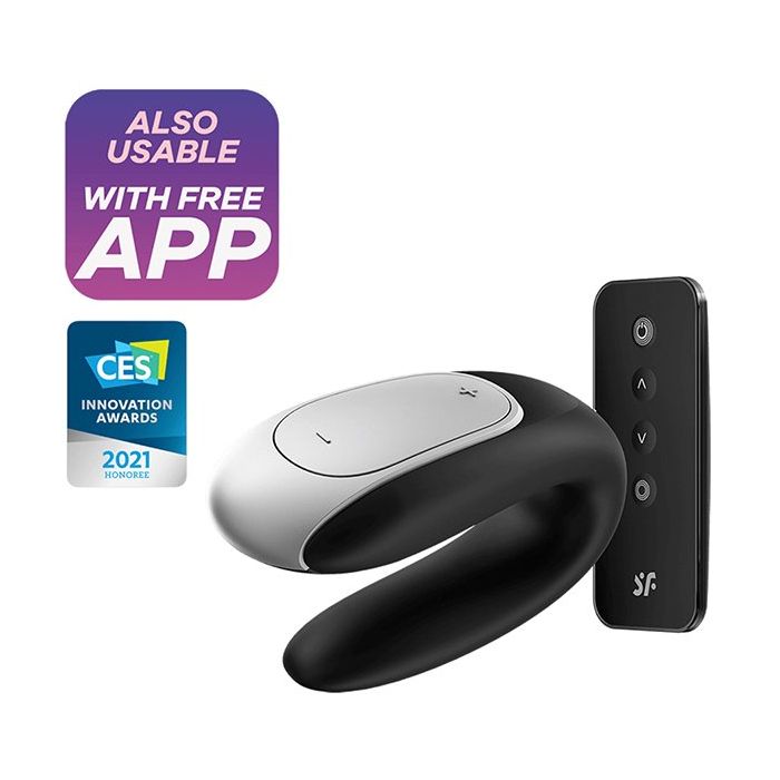 De Satisfyer Duo Vibrator - Double Fun Zwart is een innovatief speeltje dat speciaal is ontworpen voor koppels die hun seksuele ervaringen willen verrijken. Met zijn unieke U-vorm blijft de vibrator perfect op zijn plaats in de vagina, terwijl de bovenkant zachtjes op de clitoris rust voor een optimale stimulatie. De platte en gladde onderkant zorgt ervoor dat ook de partner kan genieten van de krachtige vibraties, waardoor het een ideale keuze is voor gezamenlijke plezier. Dankzij de gebruiksvriendelijke afstandsbediening en de Satisfyer Connect-app kunnen koppels eenvoudig de verschillende vibratiestanden bedienen en zelfs hun eigen unieke patronen creëren, wat zorgt voor een opwindende en persoonlijke ervaring.