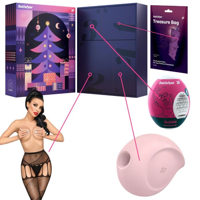 De Satisfyer Christmas Advent Box is een complete cadeauset die jouw feestdagen een spannende twist geeft. De Penthouse jarretelset zorgt voor een verleidelijke en sexy uitstraling, ideaal voor romantische momenten. Het masturbatie-eitje biedt intense stimulatie voor mannen, terwijl de Sugar Rush luchtdruk vibrator extra genot toevoegt voor hem of haar. Alles kan veilig en discreet worden opgeborgen in het luxe opbergzakje met het Satisfyer-logo.