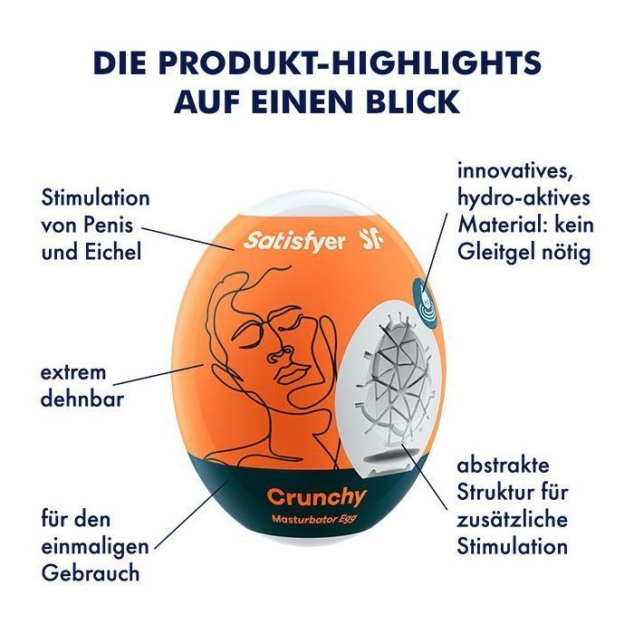 De Satisfyer Maturbator Egg is een heerlijk speeltje voor mannen die extra willen genieten van masturbatie sessies. De Satisfyer Masturbator Egg is voorzien van heerlijk flexibel materiaal en beschikt over een waanzinnig stimulerende structuur om de hele penis te stimuleren. Het hydroactieve TPE materiaal kan eenvoudig met water worden bevogtigd en zorgt voor een heerlijke soepel ervaring. Je hebt dus geen glijmiddel nodig! Perfect voor onderweg dankzij het zeer compacte formaat. Let op: de Satisfyer Masturbator Egg is geschikt voor eenmalig gebruik.