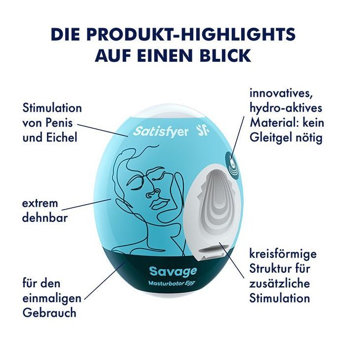 De Satisfyer Maturbator Egg Savage is een heerlijke toy voor mannen die extra willen genieten tijdens het masturberen. De Satisfyer Masturbator Egg Savage is voorzien van heerlijk flexibel materiaal en beschikt over een waanzinnig stimulerende structuur om de hele penis te stimuleren. Het hydroactieve TPE materiaal kan eenvoudig met water worden bevogtigd en zorgt voor een heerlijke soepel ervaring. Je hebt dus geen glijmiddel nodig! Perfect voor onderweg dankzij het zeer compacte formaat. Let op: de Satisfyer Masturbator Egg is geschikt voor eenmalig gebruik.