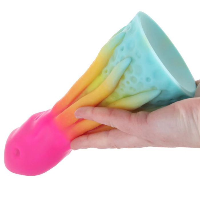 Deze unieke dildo is ontworpen om je zintuigen te prikkelen bij elke beweging. Met zijn dikke schacht en prachtige regenboogkleuren is deze dildo niet alleen een lust voor het oog, maar biedt hij ook een ongeëvenaarde ervaring. De bolvormige, driehoekige kop zorgt voor gerichte stimulatie, terwijl de acht poten met een touwachtige textuur extra sensatie toevoegen tijdens het rijden. Gemaakt van hoogwaardige, flexibele en ftalaatvrije siliconen, is deze dildo veilig voor je lichaam en perfect te combineren met glijmiddel op waterbasis. Geniet van handsfree plezier dankzij de sterke zuignap, ideaal voor spannende solo-avonturen of om je partner uit te nodigen voor kinky cosplay en fantasy-rollenspellen. Wil je je fantasieën verder verkennen? Transformeer deze dildo eenvoudig in een strap-on met je favoriete harnas en laat je creativiteit de vrije loop! Na gebruik is hij moeiteloos schoon te maken; was hem met warm water en milde zeep, spray met een toycleaner en laat hem aan de lucht drogen. Vergeet niet om hem te beschermen tegen direct zonlicht en warmte voor een langdurige levensduur. Voeg deze kleurrijke inktvis toe aan je collectie en ervaar een nieuwe dimensie van genot!
