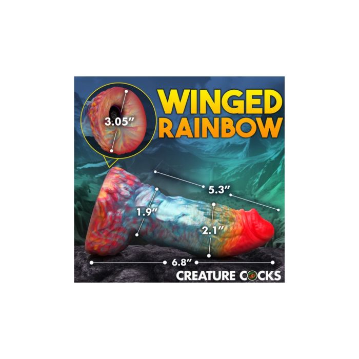 Maak je klaar om je zintuigen te prikkelen met de Siliconen Vibrator Rainbow Phoenix! Dit prachtige, iriserende speeltje is geïnspireerd op de mythische feniks en biedt een unieke ervaring die je niet snel zult vergeten. Met zijn grote, conische kop en een venige schacht die bedekt is met opwindende protuberances en mystieke texturen, zorgt deze vibrator voor een heerlijke sensatie die je op een wolk van genot zal brengen. De brede basis is uitgerust met een krachtige zuignap, waardoor je handen vrij zijn voor andere avonturen terwijl je geniet van de intense vibraties. Dit is niet zomaar een vibrator; het is een uitnodiging om je fantasieën te verkennen en jezelf te verwennen.