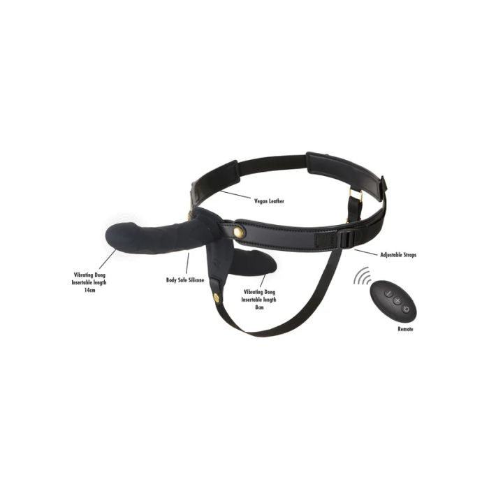 De INFERNO Strap On Dubbel Vibrerende Plezier 14 cm is speciaal ontworpen voor vrouwen die de touwtjes in handen willen nemen en biedt een krachtige ervaring voor beide partners. Het stevige harnas houdt de realistische, trillende schacht perfect op zijn plaats, zodat je je volledig kunt richten op elke stoot en kreun. Terwijl jij de controle hebt, zorgt een tweede trillend inzetstuk voor intense interne stimulatie, waardoor je elke puls en vibratie voelt. Gemaakt van zachte, lichaamsveilige siliconen, voelt het natuurlijk en glad aan op de huid. Het harnas is eenvoudig verstelbaar, wat zorgt voor een veilige en comfortabele pasvorm, ongeacht je lichaamsvorm. Met de draadloze afstandsbediening kun je moeiteloos schakelen tussen 10 verschillende vibratiestanden, perfect om te plagen, te verrassen of je partner de controle te geven. Of je nu op zoek bent naar dominantie, wederzijds genot of een spannende nieuwe ervaring, de Strap On INFERNO Dubbel Plezier 14 cm geeft je het vertrouwen en de controle om optimaal te genieten. Bovendien is het oplaadbare ontwerp altijd klaar voor gebruik, en met een beetje glijmiddel op waterbasis glijdt het soepel en moeiteloos. Maak het eenvoudig schoon met warm water en geniet van een bevredigende ervaring die je niet snel zult vergeten!