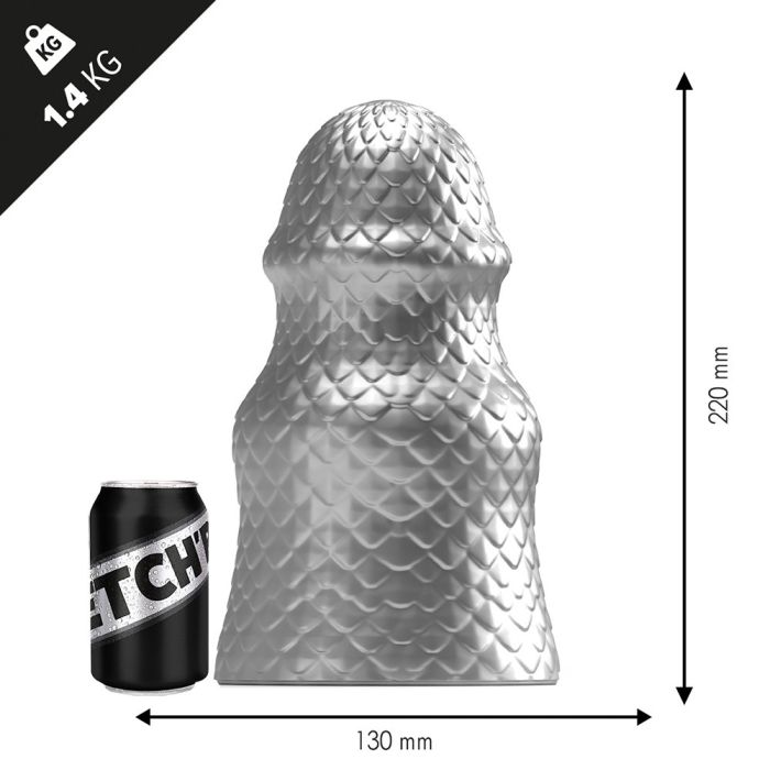 Maak kennis met de nieuwste aanwinst in de Stretch'r serie: de Stretch'r Scaly Buttplug L - Metal. Deze buttplug heeft een opvallende metallic kleur die je niet vaak ziet bij dit soort speeltjes. De Scaly is een extra grote buttplug gemaakt van super zacht vinyl, wat zorgt voor meer genot en comfort tijdens het inbrengen. Met een lengte van maar liefst 22 centimeter is deze plug perfect voor ervaren liefhebbers die al wat gewend zijn. De diameter van de plug is 13 centimeter op het breedste punt, maar door de taps toelopende vorm is het inbrengen comfortabel en kun je rustig wennen aan de grootte.
