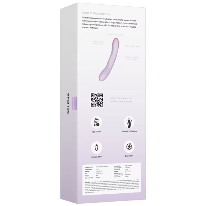 Met maar liefst 5 verschillende modes en 5 intensiteiten biedt de Selena eindeloze mogelijkheden voor jouw persoonlijke genot. De bediening is eenvoudig met één druk op de knop, zodat je je volledig kunt concentreren op de ervaring zonder gedoe. Dankzij de krachtige, stille motoren geniet je van discreet plezier, waar je ook bent. Voor nog meer opties kun je de SVAKOM-app op je smartphone gebruiken. Hiermee kun je de vibrator op afstand bedienen, de instellingen aanpassen en zelfs synchroniseren met muziek of video's voor een unieke ervaring.