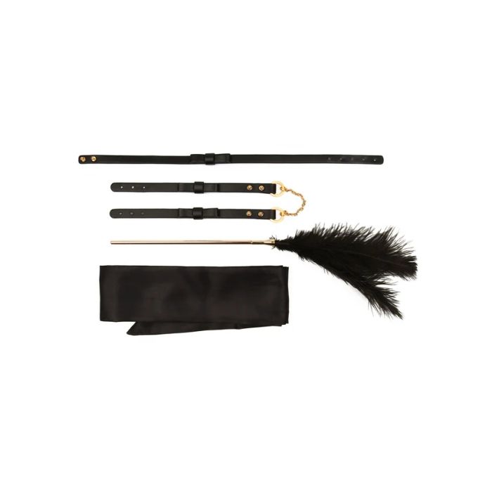 De TABOOM Desires Tease Bondage Set is een luxe 4-delige set die speciaal is ontworpen voor koppels die hun passie willen aanwakkeren. Deze set bevat een verleidelijke halsband die je partner in de juiste stemming brengt, flirterige polsboeien die zowel comfort als spanning bieden, zijdezacht bondagelint voor een luxe ervaring en een verenkietelaar die elke aanraking transformeert in een sensuele ontdekking. Of je nu een beginner bent die nieuwsgierig is naar de wereld van bondage of een ervaren avonturier die zijn repertoire wil uitbreiden, deze set biedt de perfecte mix van plezier en opwinding.