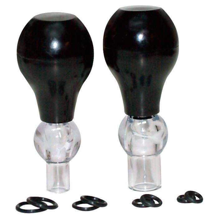 Met de Nipple Pump tepelzuigers houd je je tepels lekker stijf en gevoelig. Deze eenvoudig te gebruiken speeltjes zijn voorzien van een kleine opening waar je de rubberen ring van jouw keuze overheen schuift. Plaats vervolgens de opening over je tepel en knijp in het luchtreservoir totdat je het gewenste resultaat hebt bereikt. Om je tepels nog harder te maken, kun je gebruik maken van de pomp met de bredere opening. Deze set wordt geleverd met maar liefst 8 verschillende tepelringen, waardoor je eindeloos kunt variëren. Geniet van super opgewonden partners en een intensere en gevoeligere ervaring bij elke aanraking.