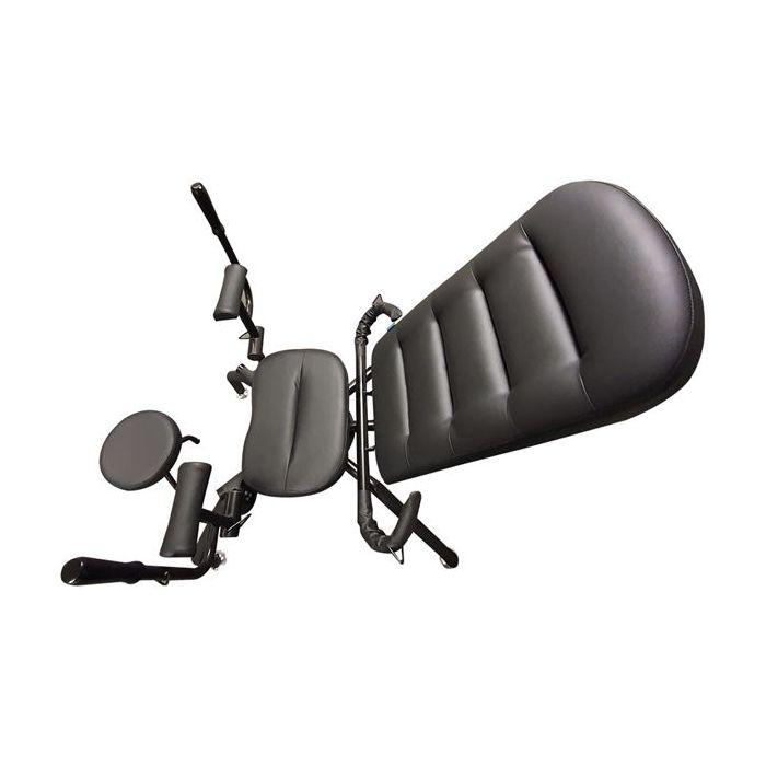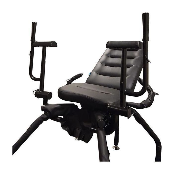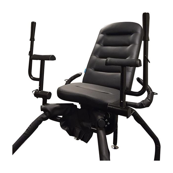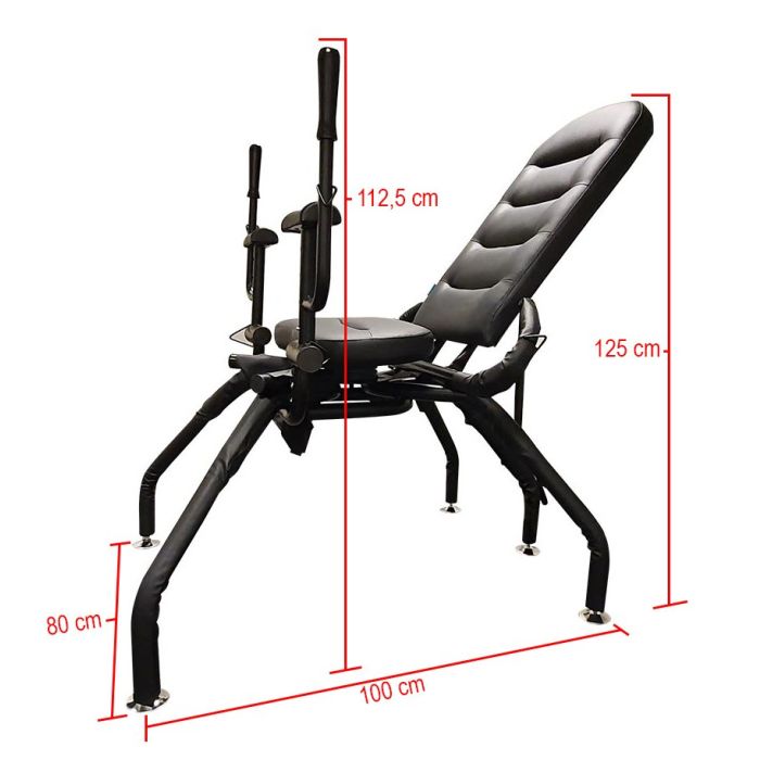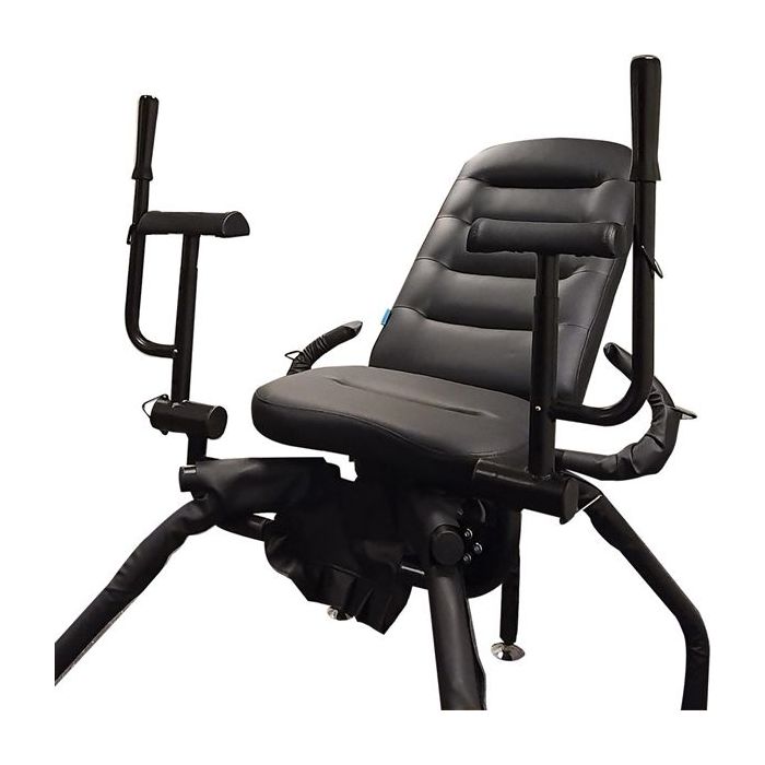 De rugleuning is verstelbaar en voorzien van zachte, dikke bekleding, zodat je comfortabel kunt zitten terwijl je partner je onderzoekt of verleidt. De verstelbare krukken zorgen ervoor dat je benen omhoog gebracht kunnen worden, zodat je sub of partner perfecte toegang heeft tot je intieme plekken.