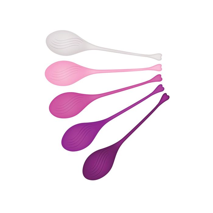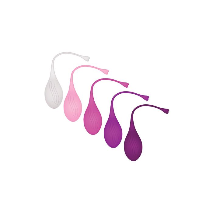 Geef je orgasmes een krachtige boost door je kegelspieren te trainen! Deze elegante 5-delige kleurrijke set bevat individueel gewogen kegelballen die gemakkelijk naar binnen glijden terwijl je ze aanspant. Voel de buitengewone sensatie terwijl je rondloopt met je erotische geheim en ga langzaam over naar zwaardere ballen als je je comfortabel voelt. Kegelballen werken door het versterken van je bekkenbodemspieren om je voor te bereiden op betere seks, betere controle - en natuurlijk, intensere orgasmes! Waterdicht en lichaamsveilig, ophaalkoord voor eenvoudige verwijdering.