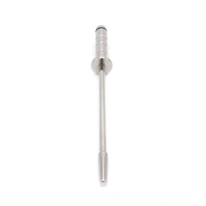 De Vibrerende Dilator Samurai Sound van Kiotos is een geavanceerde urethrale dilator voor de ervaren liefhebber. Het gladde, taps toelopende ontwerp maakt het inbrengen comfortabel, terwijl de lange inbrengbare lengte van 15,5 cm zorgt voor diepe stimulatie. Eenmaal ingebracht kun je de vibraties activeren via het draaisysteem bovenaan; het effect voel je tot in je tenen, ondanks dat het buiten de plasbuis nauwelijks merkbaar is. Het handvat is voorzien van ribbels voor een stevige grip, en de benodigde batterij wordt meegeleverd zodat je direct kunt starten. Voor optimale hygiëne is het belangrijk om het inbrengbare gedeelte voor en na elk gebruik af te spoelen met heet water en antibacteriële zeep.