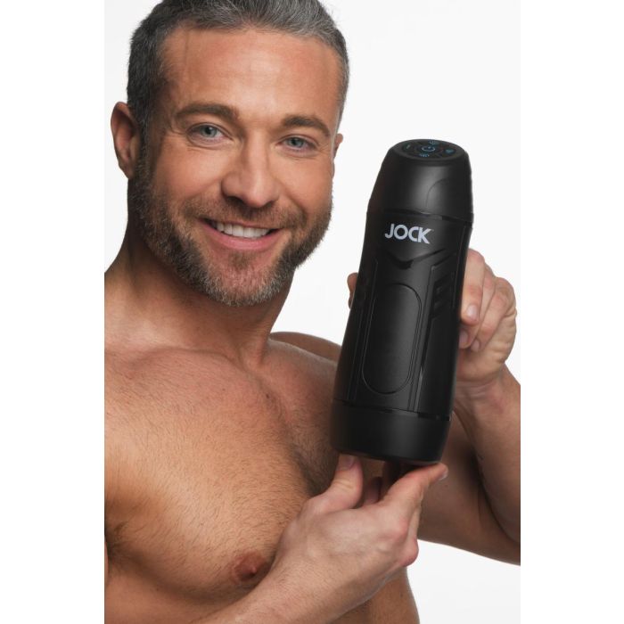 Verwen jezelf met de JOCK Masturbator is een innovatief speeltje dat de ultieme combinatie van zuiging en vibratie biedt voor een ongeëvenaarde sensatie. Deze high-tech masturbator verwelkomt je met een zachte, ribbelige ingang die je penis omarmt en je meeneemt op een spannende reis door een tunnel vol stimulerende nopjes. Gemaakt van flexibel TPE, voelt de binnenkant heerlijk glad aan, vooral in combinatie met een waterbasis glijmiddel voor die extra soepele bewegingen. Met maar liefst 3 verschillende zuigstanden en 3 vibratie-instellingen heb je de volledige controle over je genot; gebruik ze afzonderlijk of combineer ze voor een intensere ervaring. De stevige buitenkant is voorzien van ribbels voor een extra grip, zelfs als je handen glibberig zijn. Na gebruik is de binnenste hoes eenvoudig te verwijderen en kan deze binnenstebuiten worden gekeerd voor een grondige reiniging. Dek het speeltje af met de bijgeleverde stofkap en laad het op met de USB-kabel, zodat je altijd klaar bent voor je volgende avontuur. Met een totale lengte van 24,1 cm, een breedte van 9,1 cm en een inbrengdiepte van 14 cm is de JOCK Masturbator de ideale metgezel voor een onvergetelijke en bevredigende ervaring.
