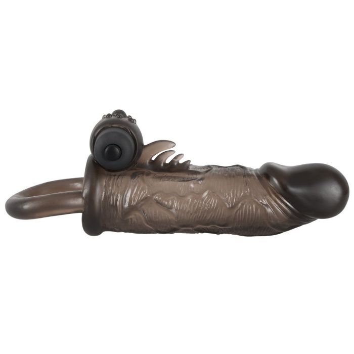 Verwen je partner vanavond met een langere en dikkere penis, voorzien van een heerlijke bullet vibrator en andere stimulerende verwennerijen! Schuif de penissleeve om de schacht van je lul en bevestig de ring achter je balzak. De penissleeve is heerlijk rekbaar en je kunt hem lekker insmeren met wat glijmiddel. De bullet trilt heerlijk om de basis van je pik en tegen zijn kontgaatje aan, de stekeltjes voor de bullet trillen tussen zijn bilnaad. Dat belooft een hete nacht te worden.