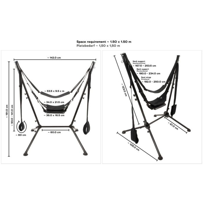 - Verstelbare riemen (Hoofd: 165,5 - 253,5 cm, Rug: 180 - 234 cm, Zit: 182 - 250 cm)