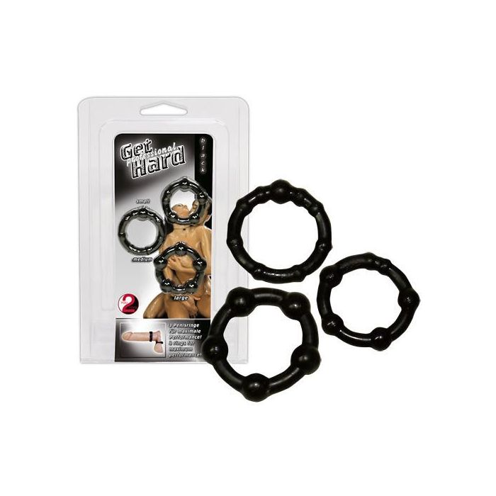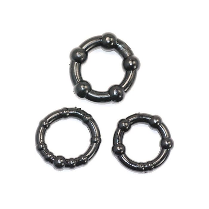 Met deze set cockringen haal je alles in huis voor keiharde en langdurige erecties! Deze set bestaat uit drie verschillende cockringen van Ø 3.00cm tot 4.00cm. Gebruik er één of juist alle drie tegelijk! Alle cockringen zijn voorzien van stimulerende bolletjes. Gemaakt van flexibel en rekbaar siliconen.