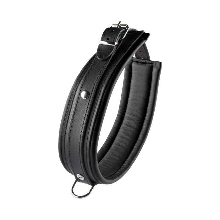 Neem de controle over met deze zwarte halsband. Je partner leek nog nooit zo onderdanig. Deze prachtige leren zwarte halsband is in verschillende maten verstelbaar. De halsband heeft een stevige lus waar bijvoorbeeld een ketting of een touw aan vastgebonden kan worden. Wie zet jij vast?