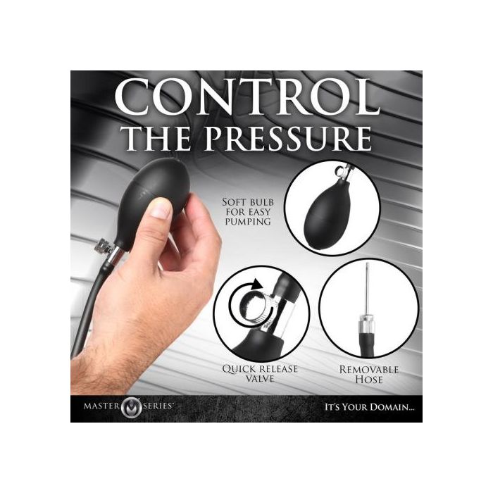 Met de bijgeleverde pomp heb je volledige controle over je plezier; blaas de plug eenvoudig op tot de gewenste grootte en geniet van een op maat gemaakte ervaring. Zodra je de perfecte maat hebt bereikt, kun je de slang loskoppelen zonder dat de plug zijn plaats verliest.